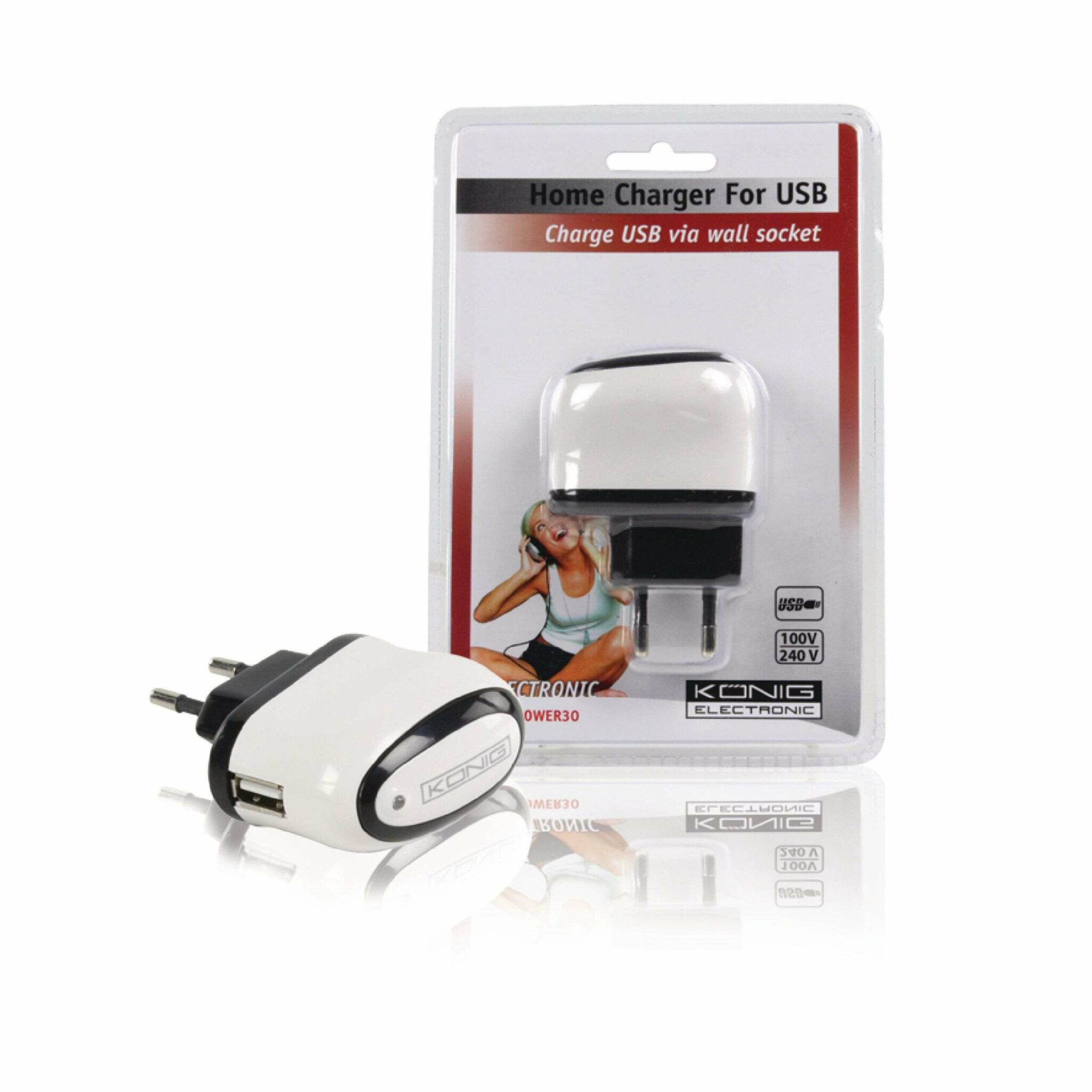 Yleismallinen USB laturi. Ihanteellinen lataamaan USB laitteet kuten, MP3 soittimet, iPodit® ja PDA’t normaalista seinäpistorasiasta. Laturissa on oikosulku- ja ylikuormitussuojat.