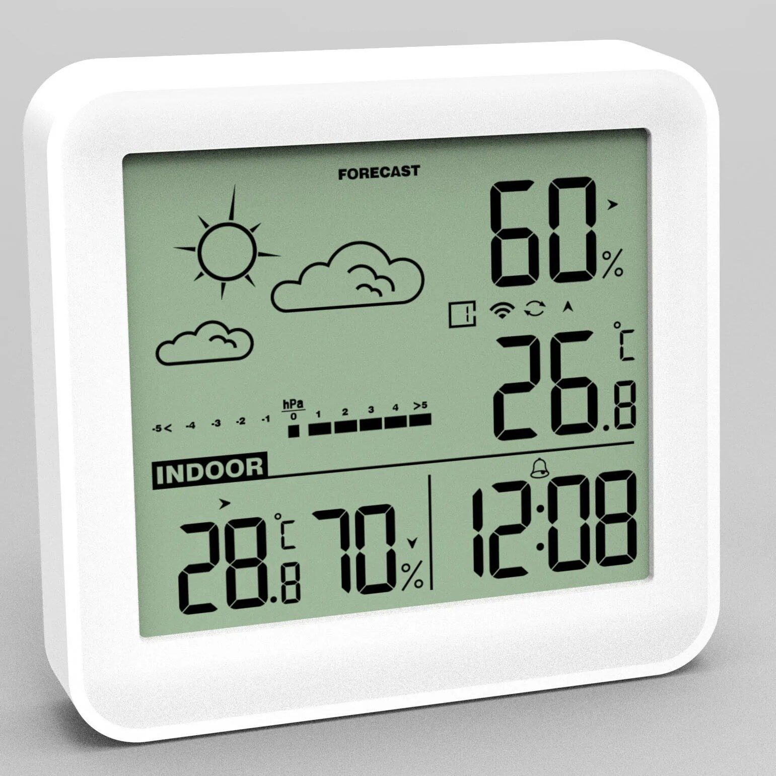Langaton sääasema sisä- ja ulkolämpömittarilla. Ulko- sekä sisäkosteusmittari, min/maks. toiminto, sääennustus, taustavalo, kello sekä herätys. Mittausalue: Ulkona -40 ~ +60°C, käyttää 4 x AAA paristoja, ei sisälly. Helppo asentaa ja käyttää.